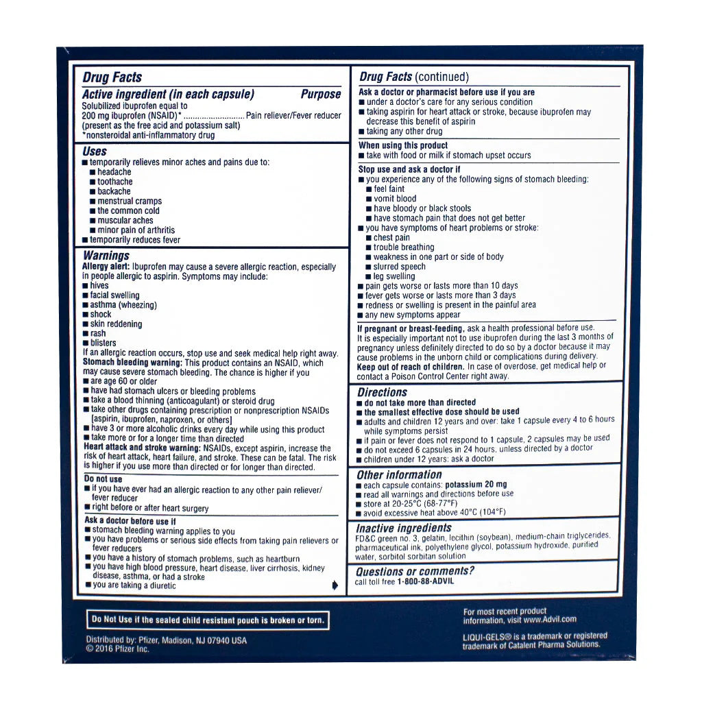 Advil® Ibuprofen Liqui-Gels Carded – 4 Count, Case of 36 Packs