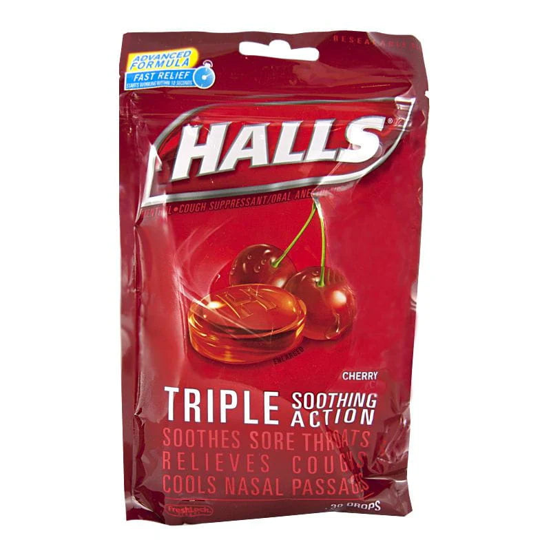 Halls® Cough Suppressant Cherry Drops – Bag of 30 Drops, Case of 36
