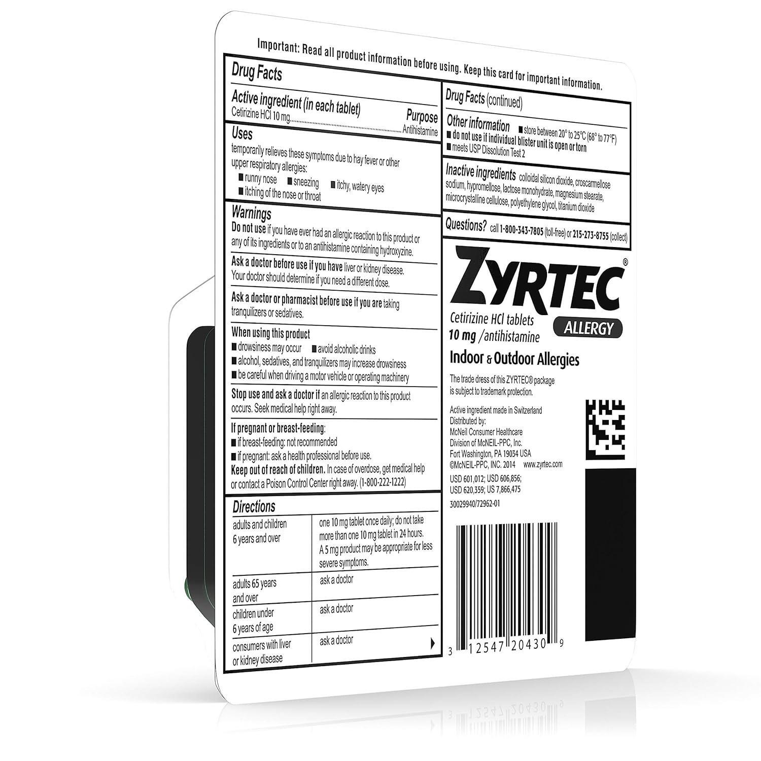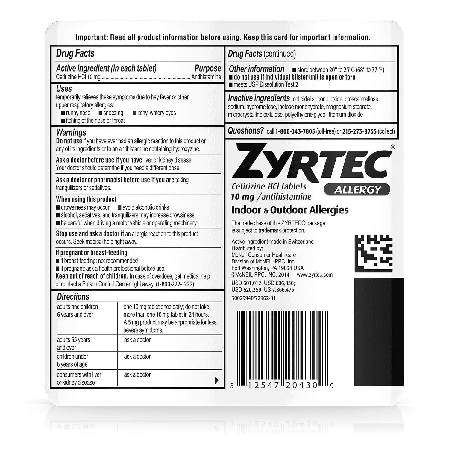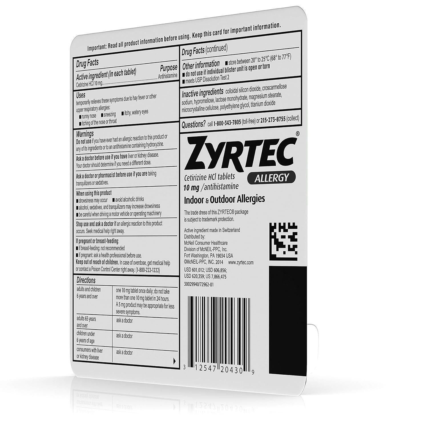 Get fast, powerful relief from indoor and outdoor allergies with trusted Zyrtec®—formulated with 10 mg of cetirizine hydrochloride per tablet. This long-acting antihistamine starts working in as little as 1 hour and delivers full 24-hour relief.